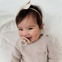 Good news! Our Itzy Soother Natural Rubber Pacifiers are now available in size 6-18 months! Featuring a slightly elongated natural rubber nipple.