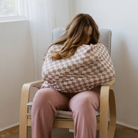 Designed in a playful pattern, our cover blends with any mom's aesthetic. Offer your customers versatile baby products that make their lives easier. Add the Rosewood Checker Multi-Purpose Cover to your lineup and provide a practical, stylish solution for any parent's multi-tasking needs today!
