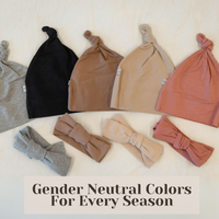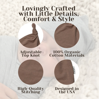 Introducing our adorable knotted hat, lovingly crafted from organic cotton for sizes newborn through 12 months. This hat combines comfort and style, keeping your little one snug and looking adorable.
